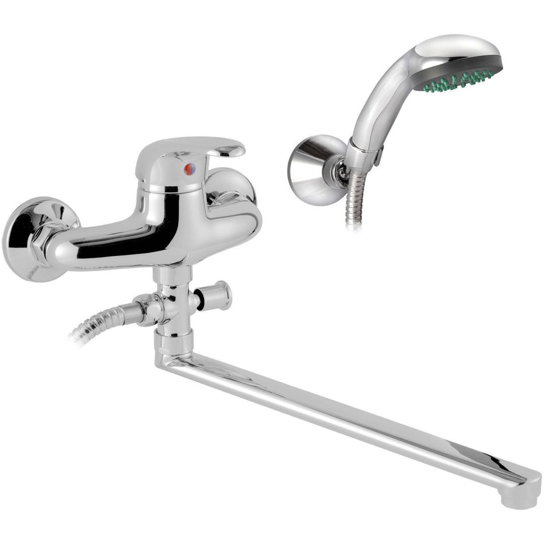 Klassikalise disainiga Aqualine vannisegisti Shark on pika pööratava jooksutoruga 300 mm. Komplekti kuuluvad: mehaaniline ümberlüliti, dušivoolik 150 cm, käsidušš, käsidušihoidja ja paigalduskomplekt. Sobib paigaldamiseks vanni kohale seinale.