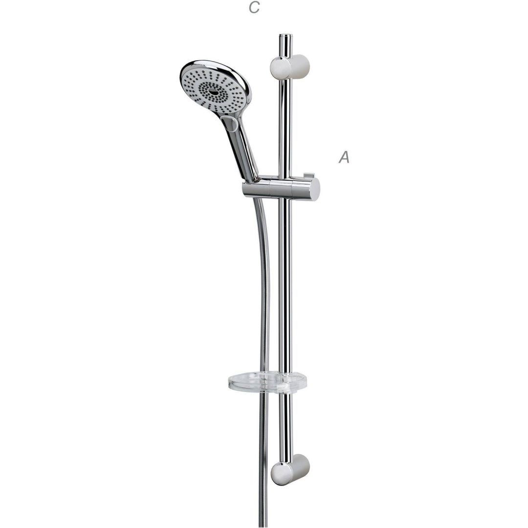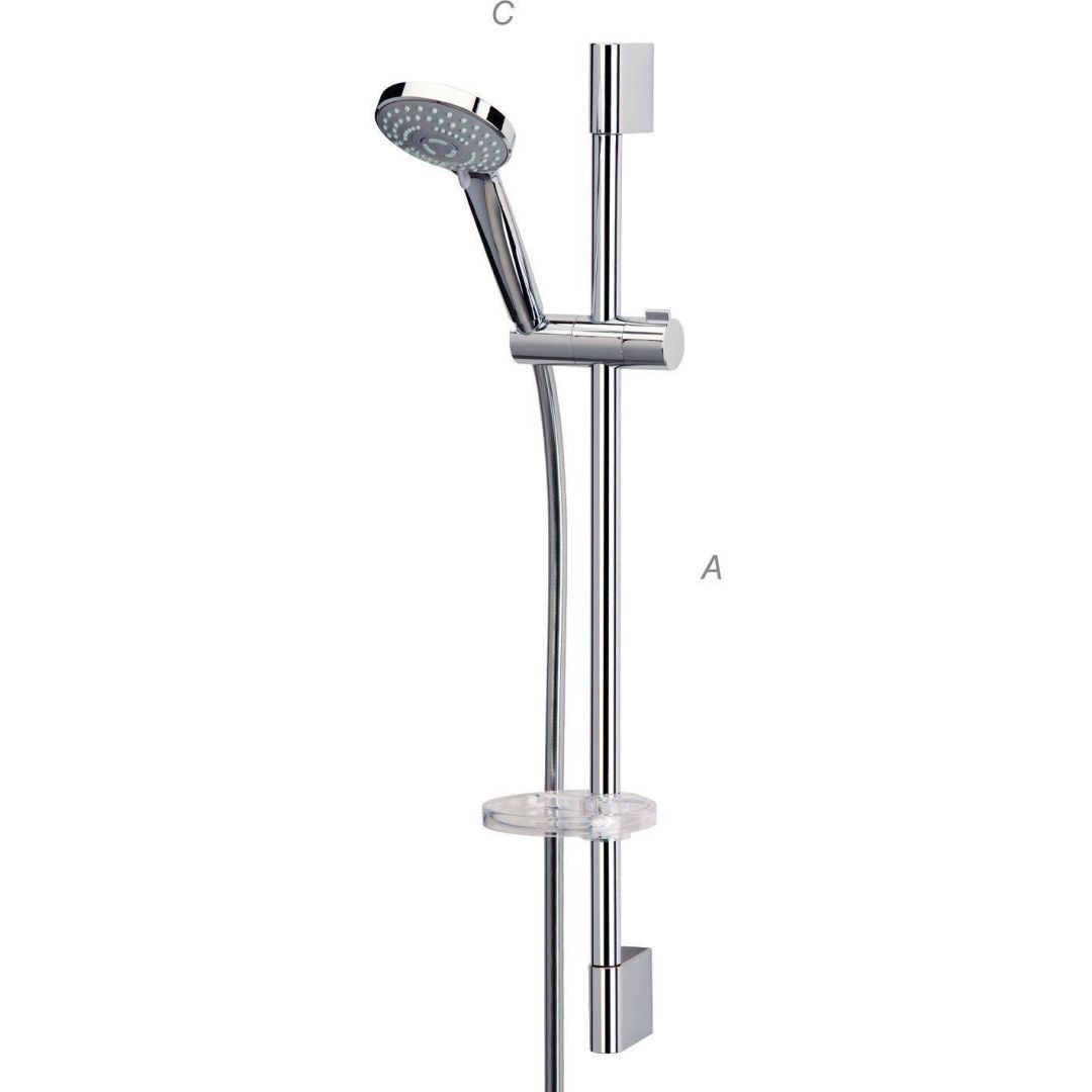Blue Star Arona seeria kvaliteetne dušilifti komplekt on kõrgekvaliteedilise ja kauakestva kroomviimistlusega.Käsidušš on kolmefunktsiooniline ning sellelt on lihtne eemaldada katlakivi. Silikoontüüsid takistavad lubjasette moodustumist ning kindlustavad vee ühtlase voolamise pikaks ajaks. Käsidušši on lihtne hooldada, lubjasette saab eemaldada näpuga üle silikoonpinna tõmmates. Komplektis on kõrgekvaliteedilisest kummimaterjalist dušivoolik, mis on kõrge temperatuuritaluvusega ja pika kasutusajaga ning seda on lihtne hooldada. Dušivoolikul on vabalt pöörlev dušivooliku otsik. Dušilifti toru pikkus on 70 cm ja dušivooliku pikkus 150 cm. Dušikomplekti kuulub ka seebialus.<br />Tootele kehtib 5-aastane* garantii, kasutades toodet erasektoris või äri- ja ühiskondlikes ruumides. Garantii kehtib alates ostu sooritamise kuupäevast. Garantiinõude esitamisel tuleb ostu dokumentaaselt tõestada.* Vastavalt Blue Star üldistele garantiitingimustele.<br /><br />Toote mõõdud (mm): A = 700 | C = 40<br />A - Kõrgus<br />B - Laius<br />C - Kaugus seinast tilani / Kaugus tsentrist tilani<br />D - Ülepeaduši läbimõõt<br />E - Mugavustsooni kõrgus<br /><br />Täpsem info blue-star.ee koduleheküljelt.