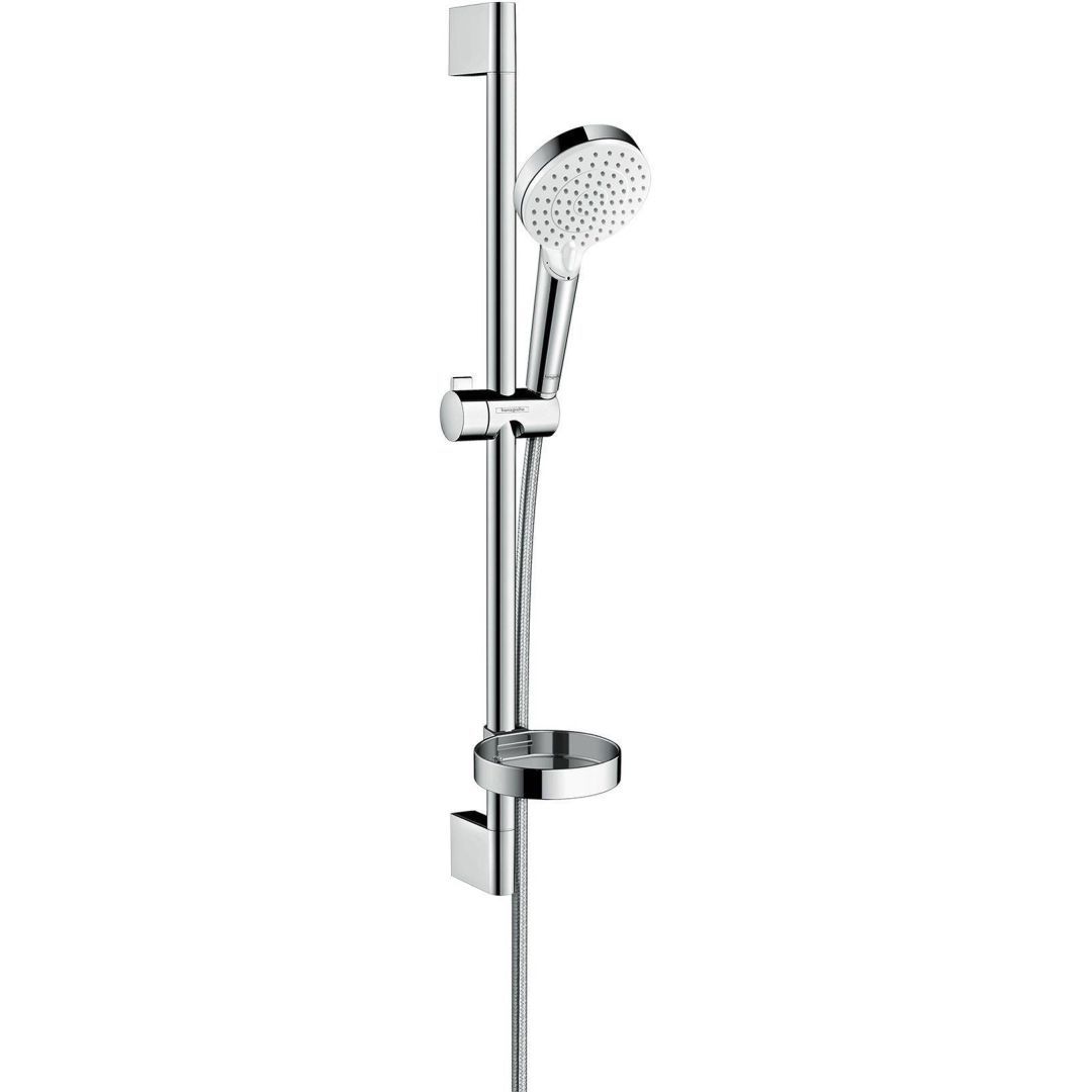 Hansgrohe Crometta dušikomplekti kuulub dušilift, käsidušš, dušivoolik ja seebialus; dušiotsikul kaks pihustusfunktsiooni (vihm ja intensiivne vihm), dušivooliku pikkus on 160 cm.