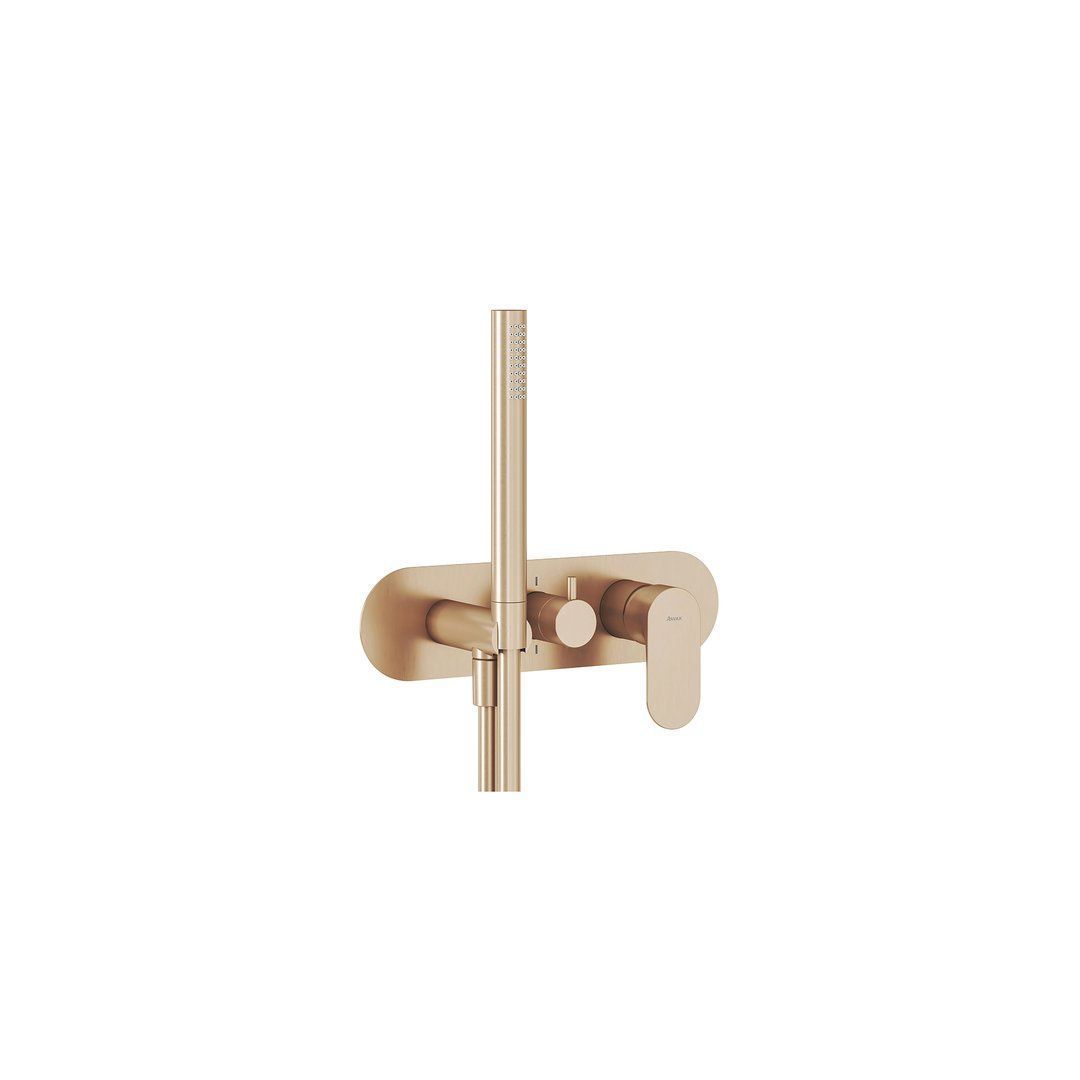 DUŠISEGISTI RAVAK ESPIRIT ES 061.60RGB.O2 ROOSA KULD, PEIDETUD GTIN: 8592626065546 Dušisegistid See mudel on mõeldud minimalistlike lahenduste austajatele. Sobib peidetud paigalduseks oma korpusega, ei sobi R-boxile. Selle peidetud segisti loomulik ilu tuleneb iga osa hoolikalt läbimõeldud proportsioonidest. Hoova sujuv liikumine tagab täpse voolu ja temperatuuri reguleerimise. Automaatne lüliti suunab veevoo käsiduši ja ülemise duši vahel dušinurgas või vanni täitmise ja duši kasutamise vahel. See segisti täiustab maitsekalt igat vannituba, jäädes tagasihoidlikuks, kuid rõõmustades oma ajatu iluga veel aastaid.<br><br>Kassett: 35 mm, keraamiline. <br>Teostus: kahe väljundiga, automaatse lülitiga, integreeritud korpusega peidetud paigalduseks – ei sobi R-boxile. <br>Värviviimistlus: RGB (matt roosa kuld). <br>Sobib vannidele ülevoolu ja käsiduši väljundiga ning dušikabiinidele ülemise ja käsidušiga. <br>Lisatarvikud (müügil eraldi): dušiotsik ja muud sama värvi aksessuaarid. <br>Segisti on integreeritud korpusega, paigaldatakse otse seina ja ei sobi R-boxile. Täiusliku vannitoa harmoonia saavutamiseks soovitame kombineerida sama värvi Espirit segistitega. Puhastamiseks kasutage RAVAK Cleaner Chrome’i.<br><br> | 14 tp | 309,00 € | Poodi | |