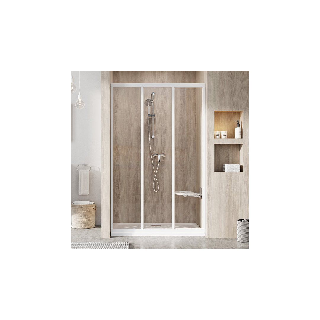DUŠIUKS RAVAK SUPERNOVA ASDP3-100, 100X198CM, PEARL GTIN: 8592626048587 Dušiuksed ja -seinad Ülikindlad ja praktiliselt kulumiskindlad dušiuksed. Ideaalne paigaldamiseks avalikesse ruumidesse. Täiuslik lahendus niššidele mõõtmetega 100 cm.<br /><br><br /><br>Pikkus: 100 cm <br /><br>Toote kõrgus: 198 cm <br /><br>Värvilahendus: profiil - valge<br /><br>Vitraaž plastikust: Pearl <br /><br><br /><br>Toode koosneb ühest liikumatust ja kahest liikuvast osast. Pöörates toodet 180°, saab valida vasak- või parempoolse sissepääsu variandi. Paigaldatakse plaadiga viimistletud vannitoanurka dušialustele RAVAK ANETA, ANGELA, PERSEUS, PERSEUS PRO, PERSEUS PRO FLAT, PERSEUS PRO CHROME, GIGANT PRO, GIGANT PRO FLAT, GIGANT PRO CHROME või otse sisseehitatud dušitrapi või -renniga põrandale. Kombineerides ühe liikumatu seina tüüpi APSS dušiuksega, saab luua L-kujulise dušinurga. Kahe liikumatu seina APSS ja dušiukse ASDP3 või ühe fikseeritud seina APSS ja dušinurga ASRV3+ASRV3 abil on võimalik luua П-kujuline dušinurk. Supernova seeria dušinurgad ja uksed tarnitakse valmiskujul ning nende paigaldamisega tuleb toime üks inimene vaid tunni ajaga. | 14 tp | 249,00 € | Poodi | |