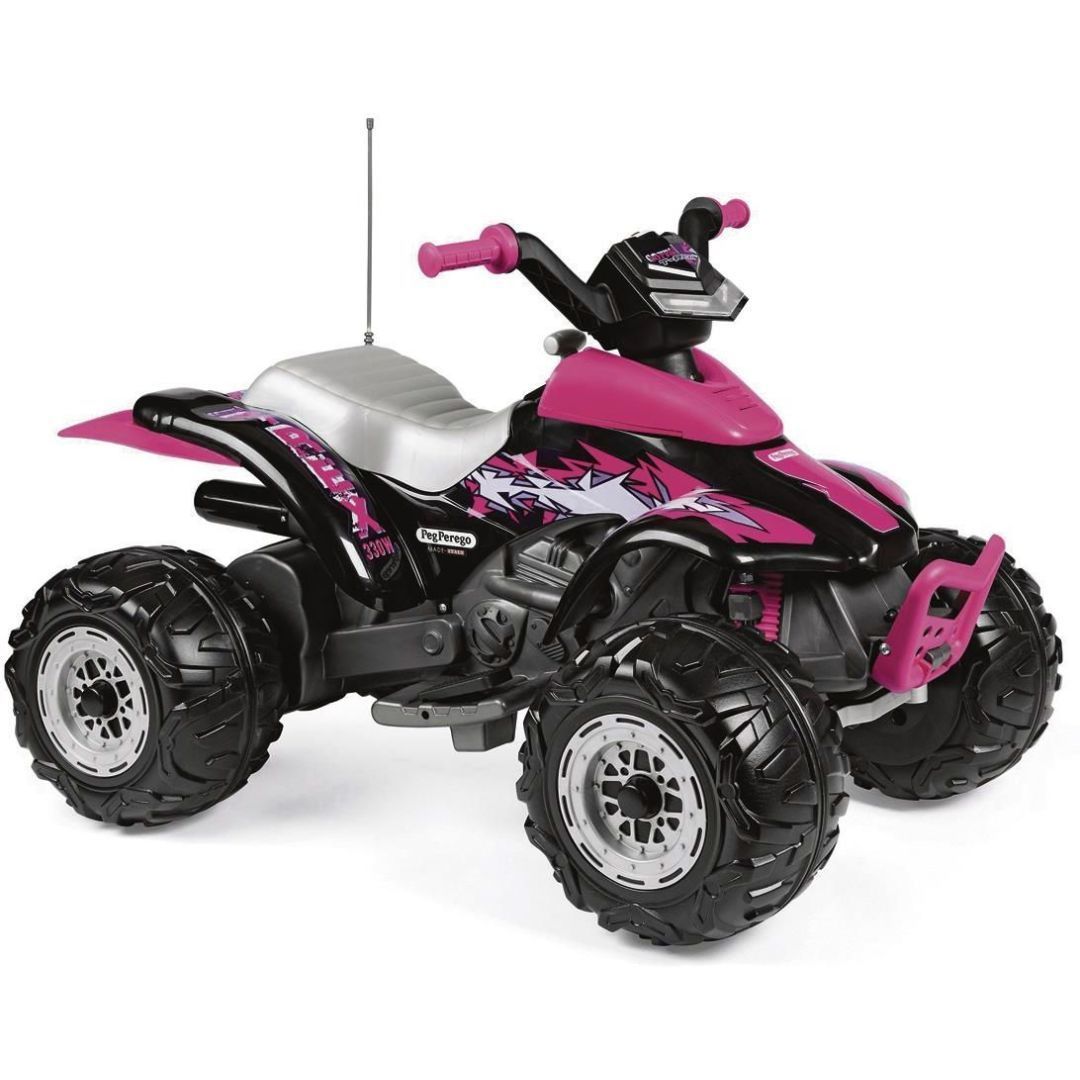 ELEKTRILINE LASTESÕIDUK PEG PEREGO CORRAL T-REX 330W PINK GTIN: 8005475412411 Autotarvikud Peg Perego elektriline lastesõiduk Corral T-Rex 330 W Pink.<br /><br>• aku 12 V 8 Ah<br /><br>• aku tööaeg ~33 min<br /><br>• max kiirus I käik 3,4 km/h II käik 6,7 km/h, tagurpidikäik 3,4 km/h<br /><br>• 2 vedavat ratast<br /><br>• elektrooniline pidur<br /><br>• ületab kaldeid kuni 10%<br /><br>• kandevõime 40 kg<br /><br>• esimesed led tuled, aku laetuse indikaator<br /><br>• mootorihääle imitatsioon<br /><br>• MP3 sisend<br /><br>• Vanusele 3+<br /><br>• 99,5 x 66,5 x 65,5 cm<br /> | 4 tp | 319,00 € | Poodi | |