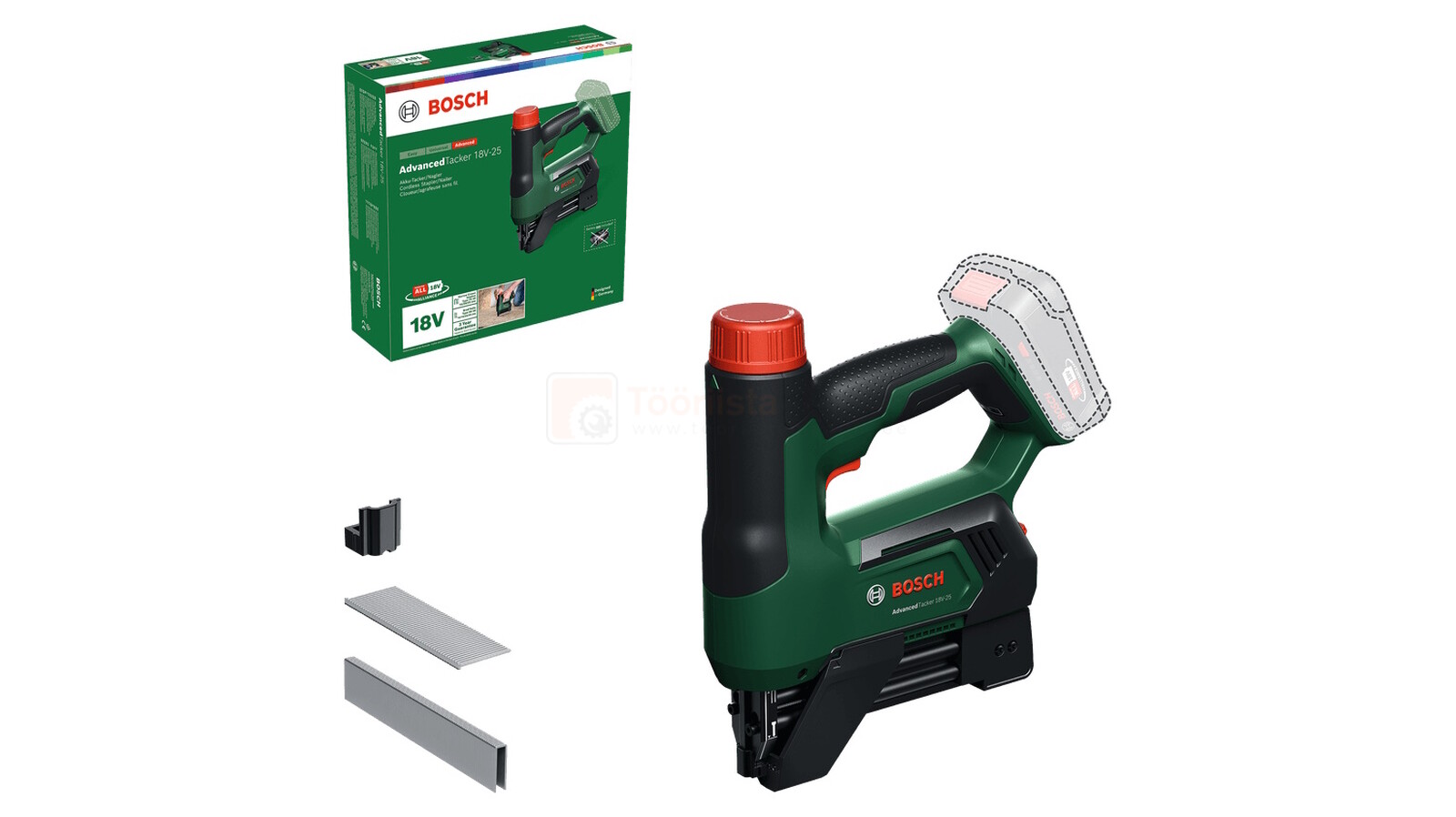 Bosch akuklambripüstol AdvancedTacker 18V-25 - ilma aku ja laadijata Tootekood: 06032A7100PTG GTIN: 4053423257335 Akunaela- ja klambripüstolid | 97,69 € | Poodi | ||