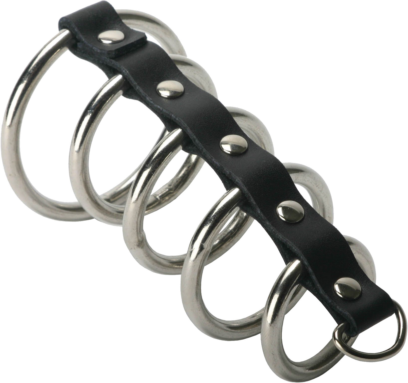 5 rõngaga vooruspuuri, mis on valmistatud erineva suurusega metallrõngastest, mis on ühendatud kunstnahast rihmaga. Suurem rõngas on mõeldud aluse jaoks, samas kui väiksem rõngas käib peenise pea ümber. Lõpus on väike rõngas rihma jaoks (ei kuulu komplekti). - läbimõõt: 5 cm / 3 x 3,8 cm / 3,3 cm. - kaal: 105 g - materjal: roostevaba teras, polüuretaan