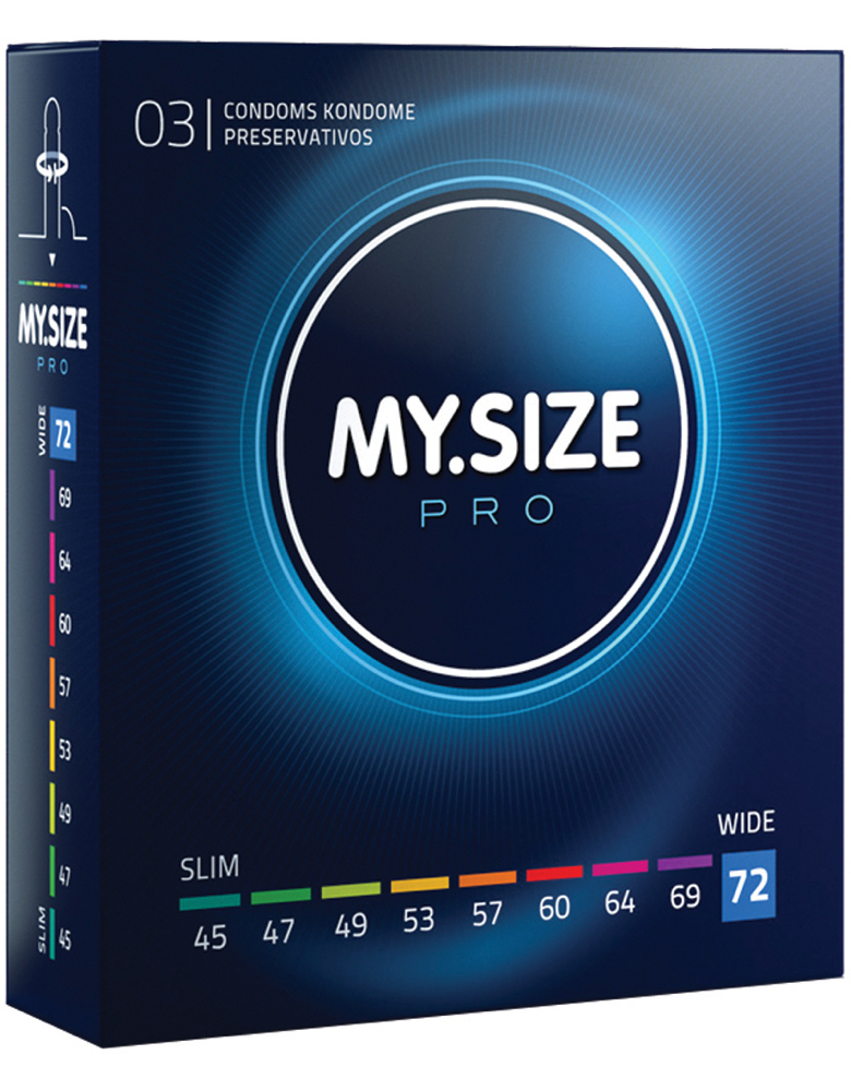 MY.SIZE pro kondoomid (3 tk) - 72/225 Tootekood: D-228879 GTIN: 4025838403720 Ekstra õhukesed kondoomid Õhukesed, läbipaistvad ja silindrilised Vytex lateksist kondoomid reservuaariga. Määritud silikoonipõhise libestiga. Sobib veganitele. Madala allergeenisisaldusega tänu puhtale VYTEX lateksile, ms sisaldab 90% vähem lateksvalke kui tavaline lateks, mille tulemuseks on peaaegu täielikult allergeenne toode, mis ei sisalda valke ega saasteaineid. Suurused:• 45/160 mm: laius kokkupressitult 4,5 cm, pikkus 16 cm. Sobib peenisele, mille ümbermõõt on kuni 9,4 cm (kuni 3 cm lai);• 47/160 mm: laius kokkupressitult 4,7 cm, pikkus 16 cm. Sobib peenisele ümbermõõduga 9,5 –9,9 cm (≈ 3,2 cm lai);• 49/165 mm: laius kokkupressitult 4,9 cm, pikkus 16,5 cm. Sobib peenisele ümbermõõduga 10-10,9 cm (≈ 3,5 cm lai);• 53/180 mm: laius kokkupressitult 5,3 cm, pikkus 18 cm. Sobib peenisele ümbermõõduga 11-11,5 cm (≈ 3,7 cm lai);• 57/180 mm: laius kokkupressitult 5,7 cm, pikkus 18 cm. Sobib peenisele ümbermõõduga 11,6 –12,2 cm (≈ 3,9 cm laiuses);• 60/195 mm: laius kokkupressitult 6 cm, pikkus 19,5 cm. Sobib peenisele ümbermõõduga 12,3 –12,9 cm (≈ 4,2 cm laiuses);• 64/225 mm: laius kokkupressitult 6,4 cm, pikkus 22,5 cm. Sobib peenisele ümbermõõduga 13-13,9 cm (≈ 4,5 cm laiuses);• 69/225 mm: laius kokkupressitult 6,9 cm, pikkus 22,5 cm. Sobib peenisele ümbermõõduga 14 –14,9 cm (≈ 4,9 cm lai);• 72/225 mm: laius kokkupressitult on 7,2 cm, pikkus on 22,5 cm. Sobib peenisele ümbermõõduga 15-16 cm (≈ 5,2 cm lai). Kondoomi paksus: 0,05 mm (50 mikronit). Tootja: Richter Rubber Tehnoloogia Sdn. Bhd. (Malaisia) ettevõtte R & S consumer goods GmbH (Saksamaa) nimel. Pakendis 3 tk. | Laos | 5,95 € | Poodi | |
