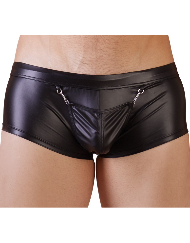 Mustad läiketa aluspüksid väikeste haakidega tasku mõlemal küljel. See võimaldab tasku suure paljastuse jaoks avada! Tasku all on auk paisumise jaoks, et saaksite rõhutada oma mehelikkust ja tekitada muljetavaldavat kühmu. Kangas: 90% polüester, 10% elastaan. Pesta käsitsi, maksimaalsel temperatuuril 30 °C.