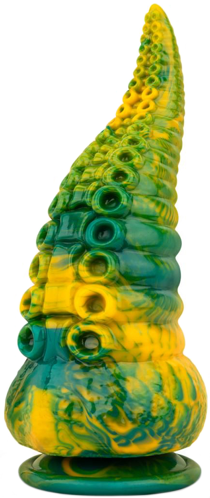 Avastage eksootiline nauding selle kahevärvilise lonksu imetlusega, millel on stimuleeriv ümmargune tekstuur, mis on kumer, terav ja paindlik ots. See kehasõbralikust, järeleandlikust silikoonist valmistatud naudingumänguasja on tugeva iminapaga, mis muudab selle ideaalseks käedeta tegutsemiseks tasasel, siledal pinnal (nii mänguasja alus kui ka pind peavad olema täiesti puhtad). Kasutage ainult veepõhiseid määrdeaineid, kuna need ei kahjusta pehmet materjali. Puhastage sooja veega maheda seebiga või kasutage seksimänguasja puhastusvahendit. - täispikkus: 21,5 cm - sissetõmmatav pikkus: 18 cm - maksimaalne läbimõõt: 6,8 cm - iminapa läbimõõt: 7,5 cm - materjal: silikoon