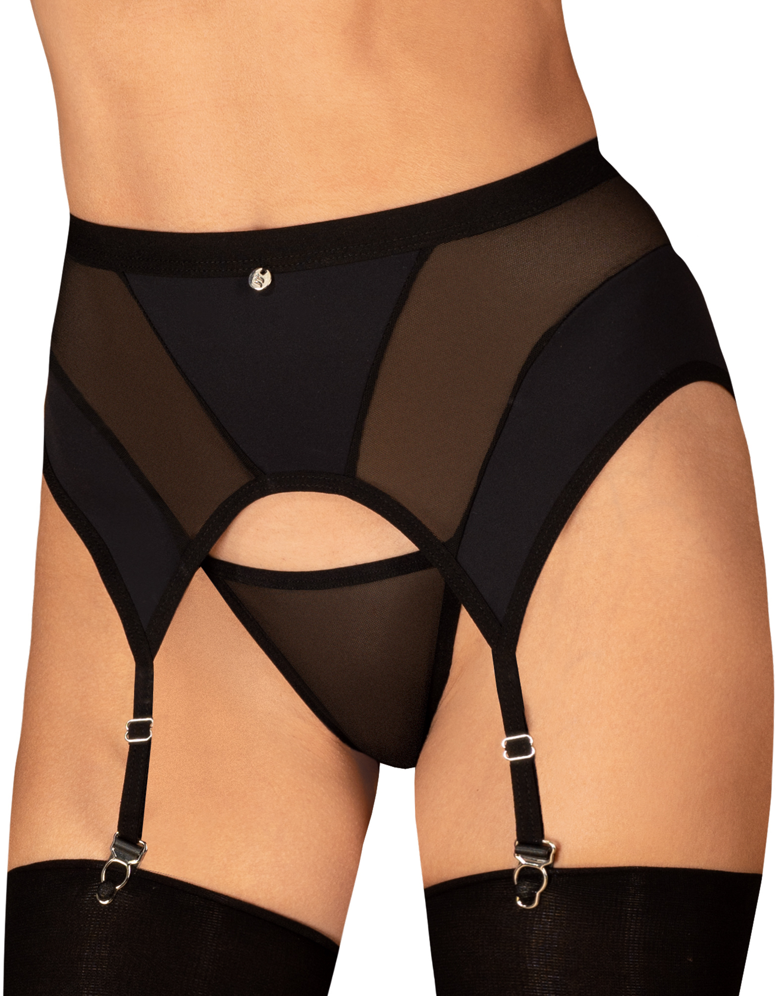 Must sukkpüksivöö läbipaistvate võrkkiudude, reguleeritavate sukapaeltega ja konksu ja silmadega seljasulgemisega. Sukad ja Stringid ei kuulu komplekti. Kangas: 94% polüamiid, 6% elastaan. Pesu käsitsi, maksimaalne temperatuur 30 °C.