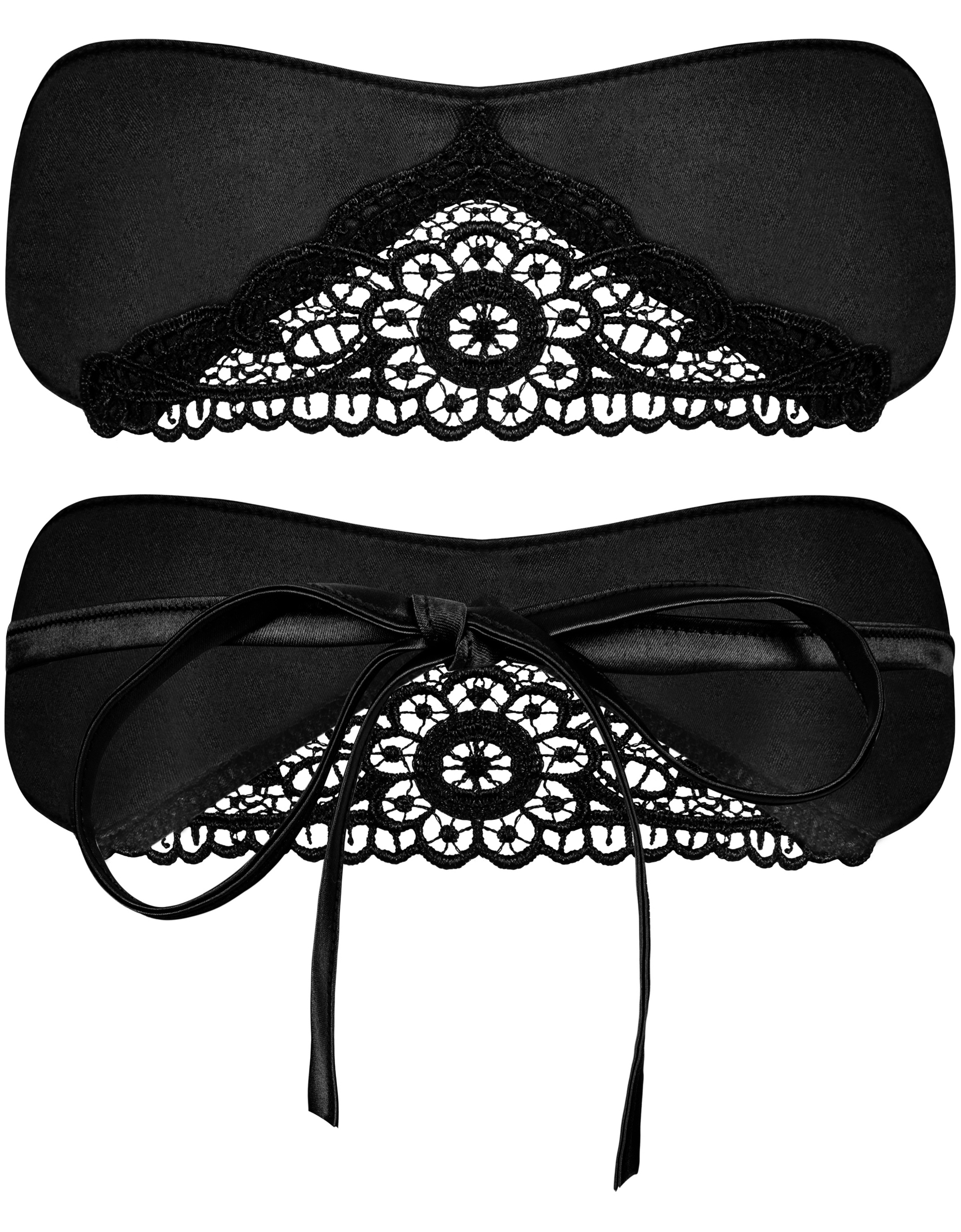 Imeline kaheosaline komplekt, mis on valmistatud mustast peenest pitsist – tugikaartega korvidega rinnahoidja ja sobivad tangad. Õlapaelad ja kinnitus on reguleeritavad. Kangas: 90% polüamiid, 10% elastaan. Pesta käsitsi, maksimaalsel temperatuuril 30 °C.