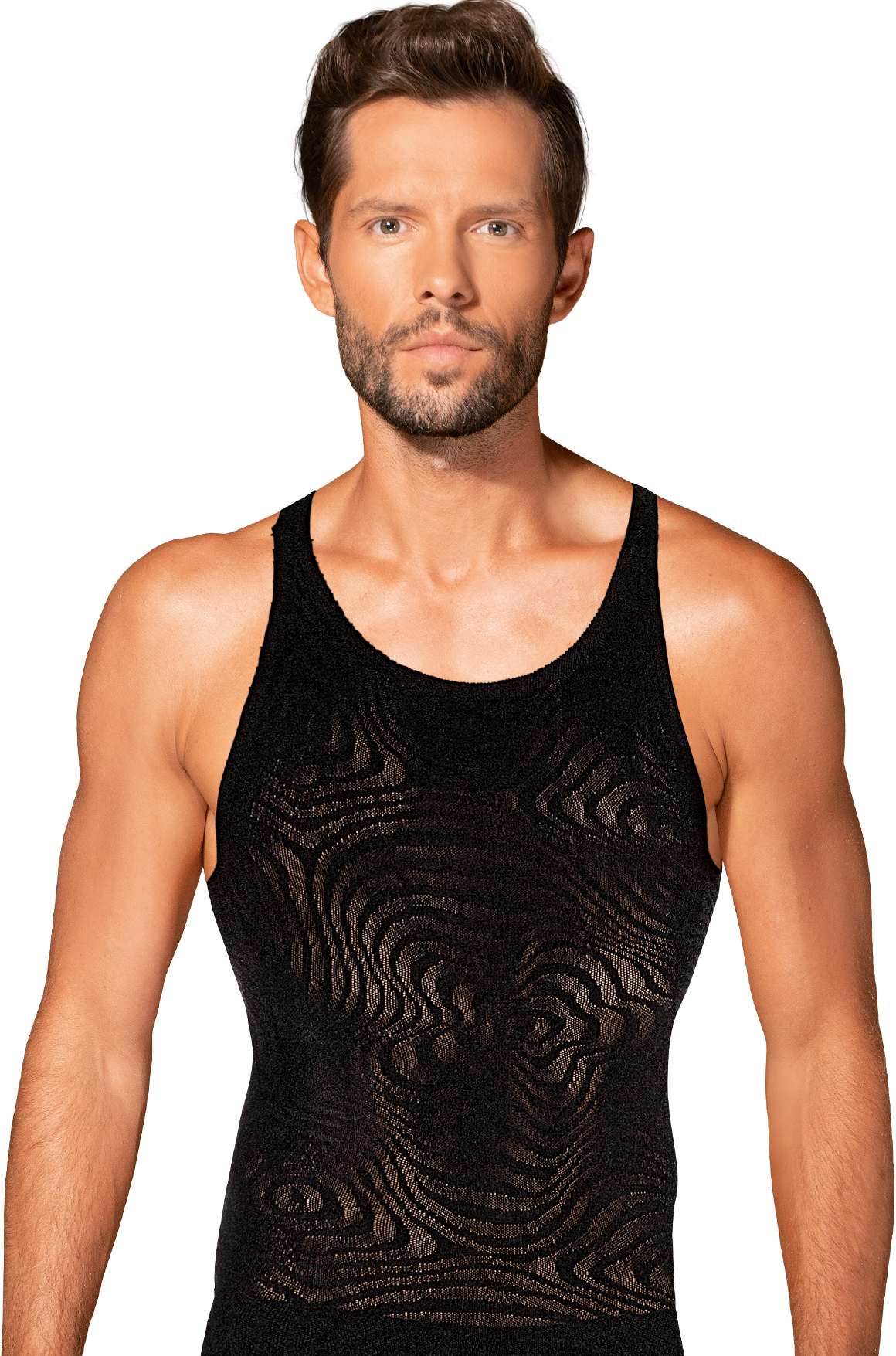 Must venivast võrgust geomeetrilise mustriga varrukateta topp. Üks suurus (S-L). Materjal: 90% nailon, 10% elastaan. Pesta käsitsi, maksimaalsel temperatuuril 30 °C.