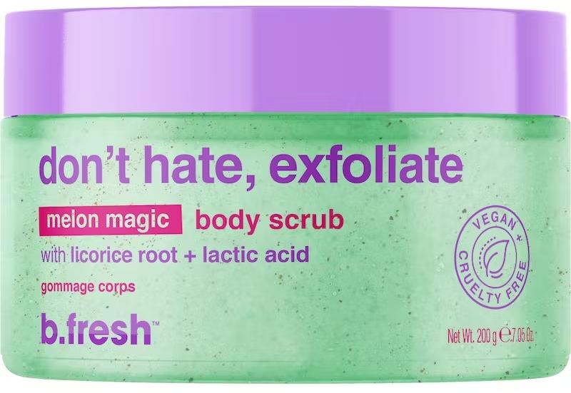 b.fresh Don't Hate, Exfoliate Melon Magic Body Scrub meloni lõhnaga kehakoorija, 200 g GTIN: 9347108051468 Kõik tooted --> Näole ja kehale --> Kehahooldustooted --> Kehakoorijad | 10,99 € | Poodi | ||