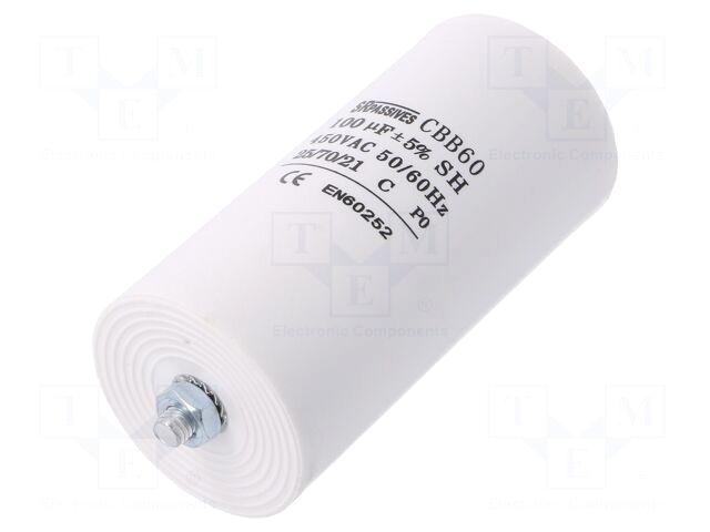 100uF | 450V | Ø60x120mm | -25÷70°C | ±5% | 3000h Tootekood: CBB60E-100/450 Passiivelemendid | 18,45 € | Poodi | ||