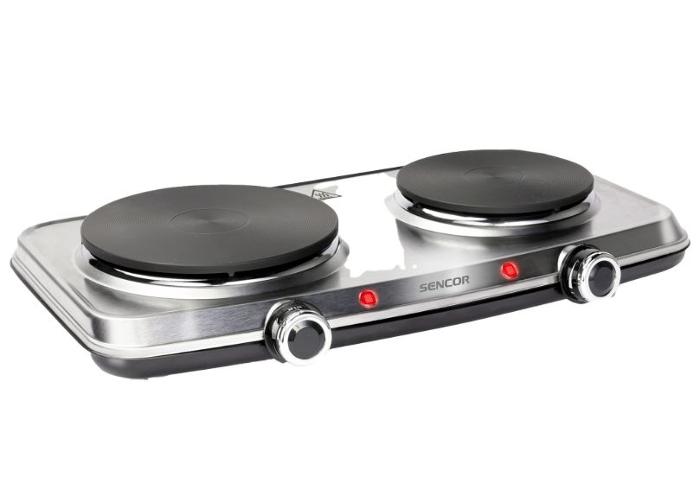 Roostevabast terasest korpusega lauapliit Sencor ; Keedualade läbimõõt 18 ja 15 cm ; Reguleeritav võimsus ; 2 kontrolltuld, ülekuumenemise kaitse ja libisemiskindlad jalad ; Lihtne kasutada ja puhastada ; Toitejuhtme pikkus 0,8 m ; Kaal: 4 kg