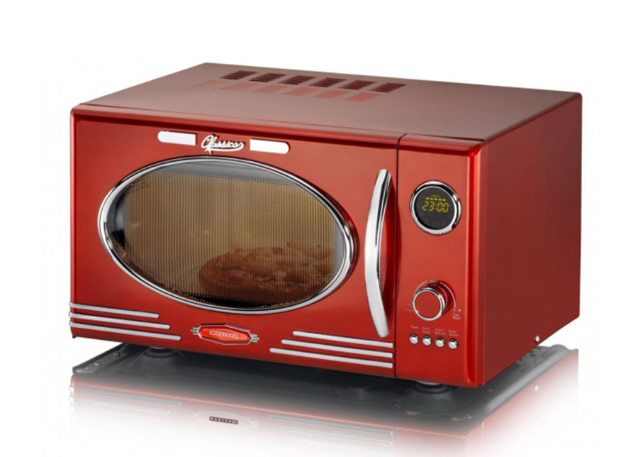 Pilkupüüdev kroomitud detailidega metallikpunane retrostiilis grill-funktsiooniga mikrolaineahi ; LED-ekraan tagab lihtsa juhtimise ja annab mikrolaineahjule kaasaegse mugavuse, lapselukk aga ohutu kasutamise