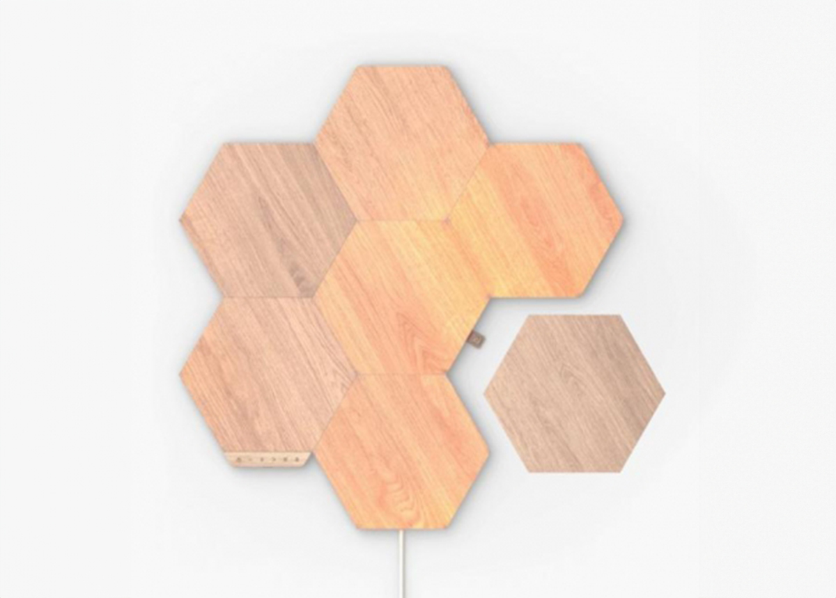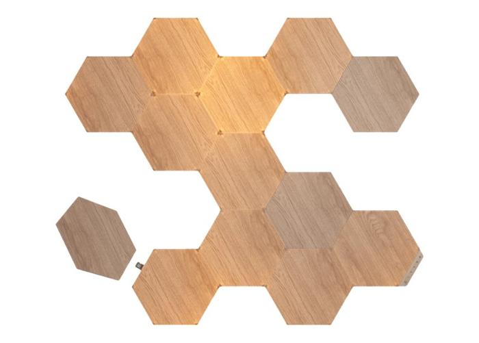 Nanoleaf Elements Hexagons stardikomplekt sisaldab kõike, mida vajad oma ainulaadsete valgustusdisainide loomiseks ; Naudi väljalülitatult peent puidusüü imitatsiooniga spooni või lülita sisse, et valgustada oma ruumi dünaamilise helendusega