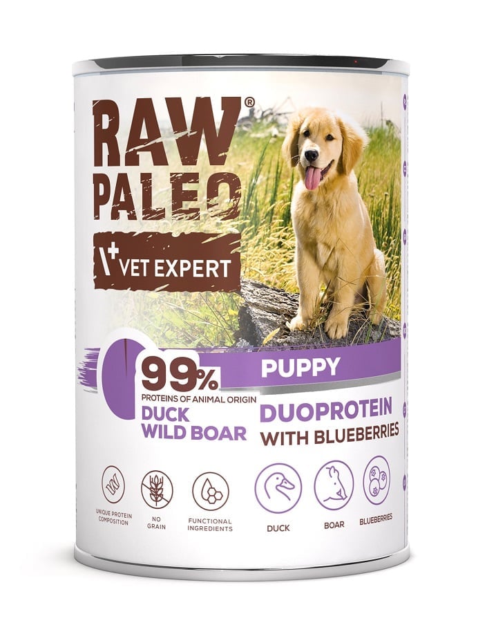 RAW PALEO Duck & Boar Puppy 400g pardi- ja metssea märja toitu kutsikatele GTIN: 5902414212114 Koertele>Koeratoit ja maiused>Koerte märgtoit | 3,75 € | Poodi | ||