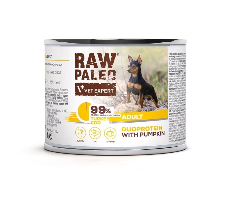 RAW PALEO Turkey&Cod Adult 200g kalkuni ja tursa märgtoit koertele GTIN: 5902414212121 Koertele>Koeratoit ja maiused>Koerte märgtoit | 2,32 € | Poodi | ||