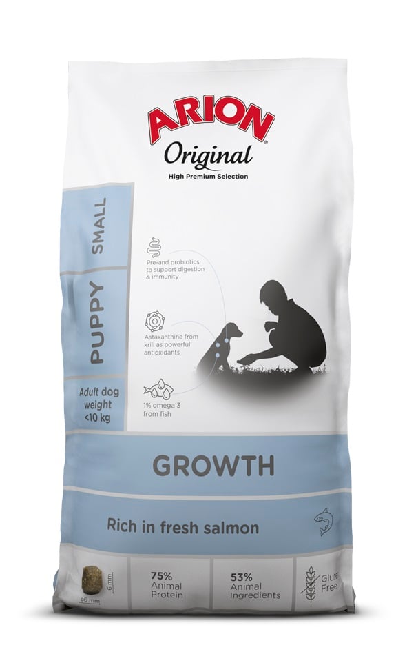 ARION Original Growth Puppy Small Salmon Rice 2 kg GTIN: 5414970060523 Koertele>Koeratoit ja maiused>Koerte kuivtoit | 11,37 € | Poodi | ||