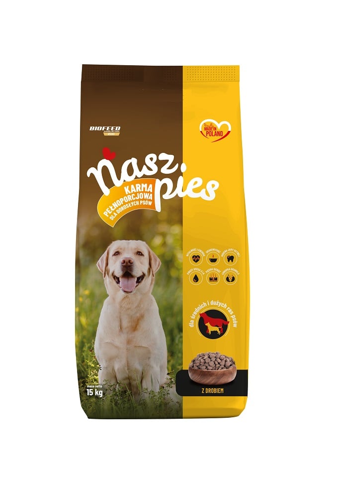 BIOFEED NASZ PIES kuivtoit kanaga keskmistele ja suurtele koertele 15 kg GTIN: 5906744516478 Koertele>Koeratoit ja maiused>Koerte kuivtoit | 30,46 € | Poodi | ||