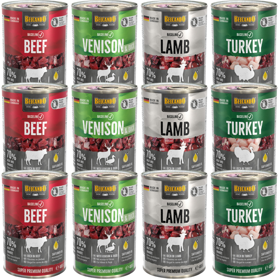 BELCANDO Baseline Segatud maitsed 12x400g kalkun, lambaliha, hirveliha koos pardiga, veiseliha Koertele>Koeratoit ja maiused>Koerte märgtoit | 24,24 € | Poodi | ||