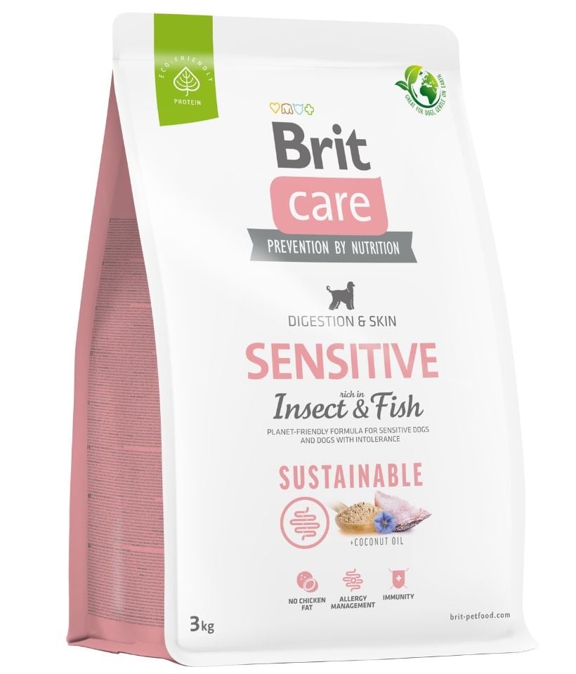 BRIT CARE Dog Sustainable Sensitive kala putukate täiskasvanud koertele kala ja putukate 3 kg