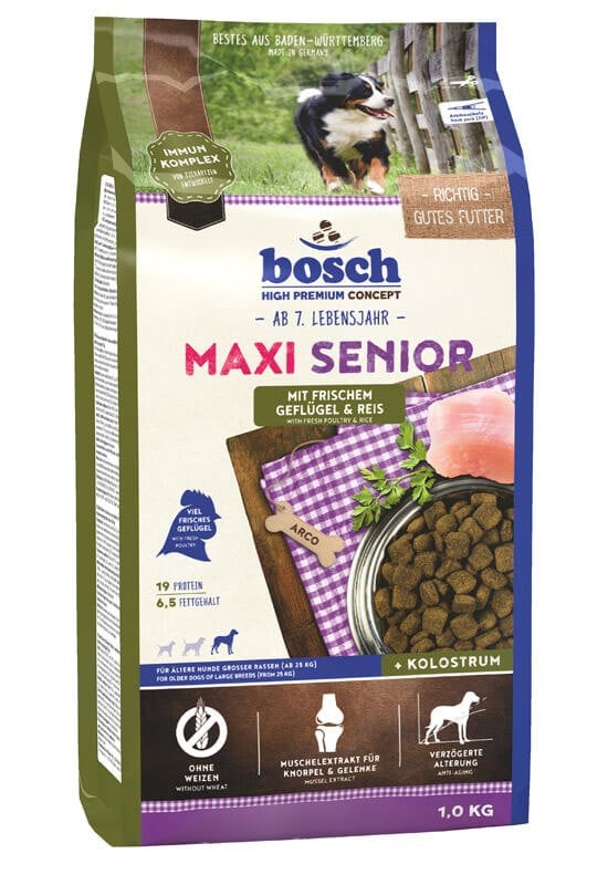 Bosch Maxi Senior linnuliha ja riisiga 1 kg GTIN: 4015598013734 Koertele>Koeratoit ja maiused>Koerte kuivtoit | 4,37 € | Poodi | ||