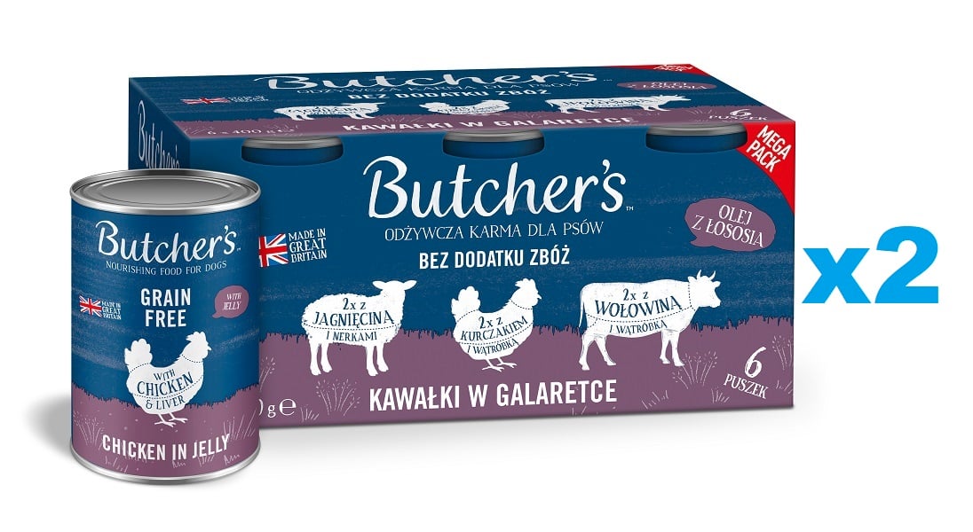 BUTCHER'S Original Recipe in Jelly, koeratoit, lambaliha tükkidega želees, 6 x 400g