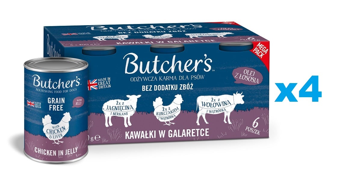 BUTCHER'S Original Recipe in Jelly, koeratoit, kanatükid želees 24 x 400g