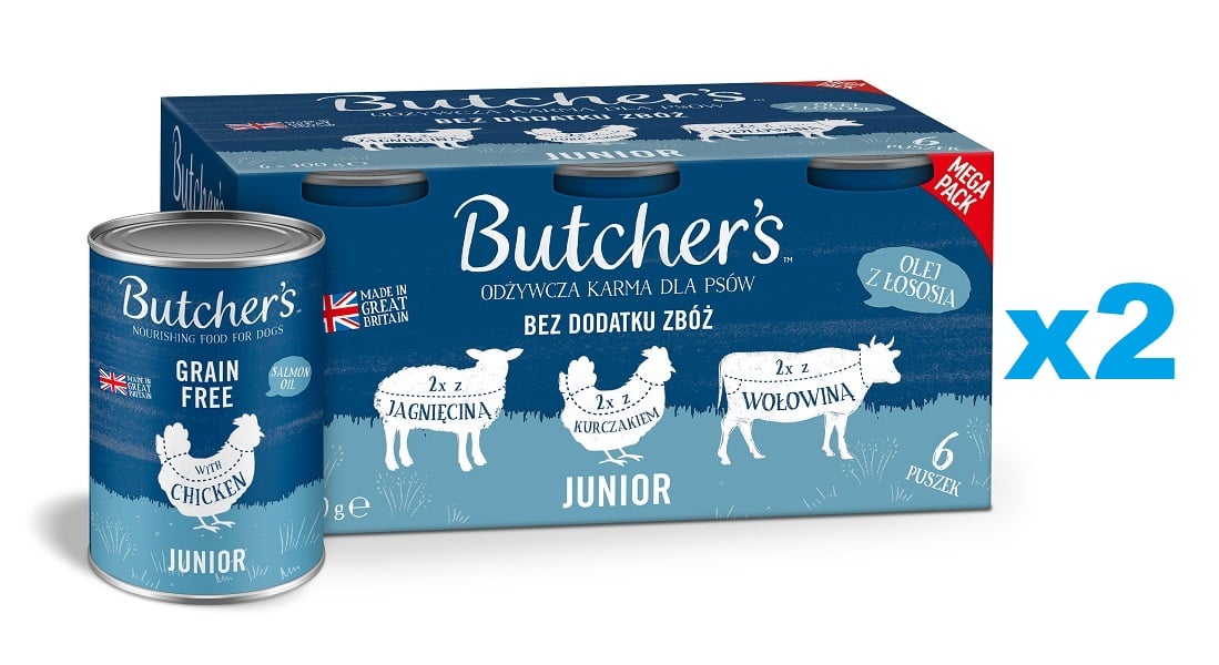 BUTCHER'S Original Junior, koeratoit, kanatükid želees, 6 x 400g