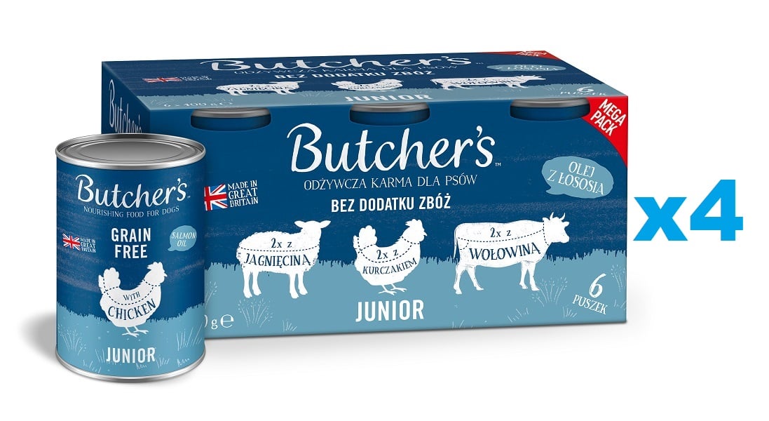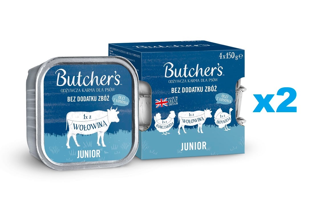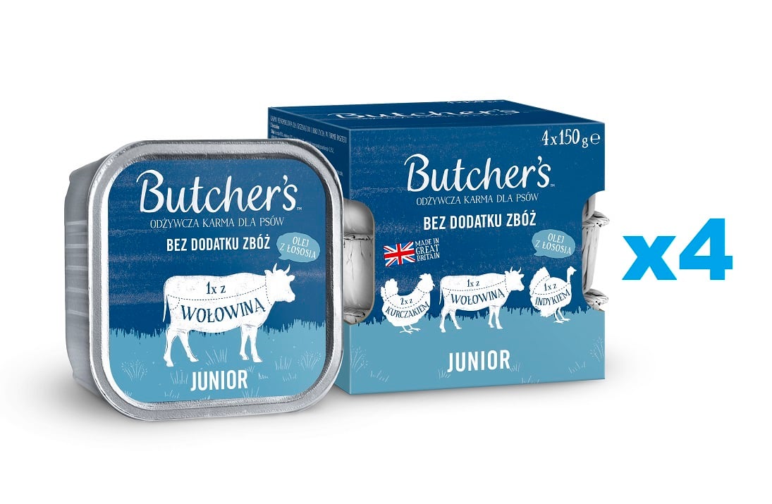 BUTCHER'S Original Junior segamaitsed 4x150 g kana-, veise- ja kalkunipasteeti kutsikatele