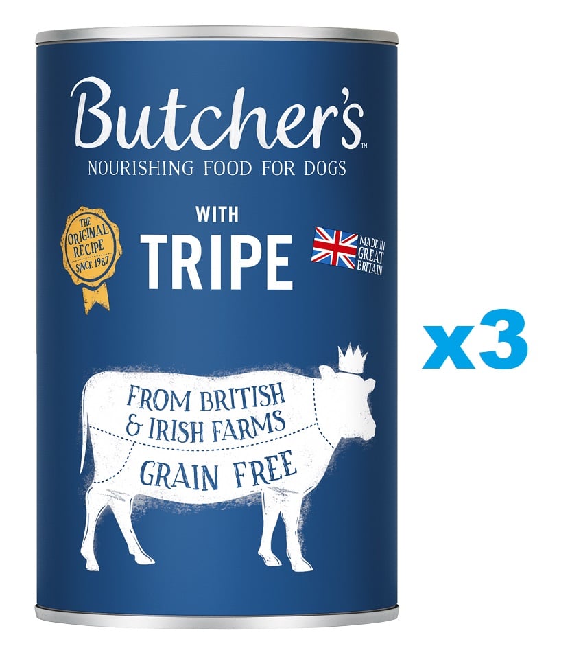 BUTCHER'S Original Tripe Mix, koeratoit, kõhutäiega, pasteet, 3x1200g