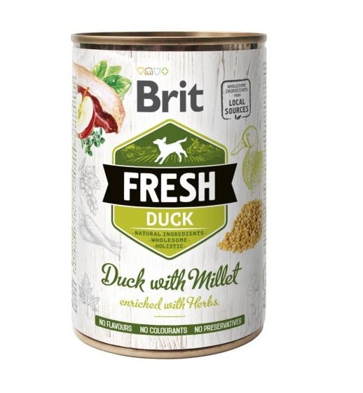 BRIT FRESH Duck koos hirssiga 400 g part ja hirssiga märja koeratoitu GTIN: 8595602533909 Koertele>Koeratoit ja maiused>Koerte märgtoit | 2,20 € | Poodi | ||