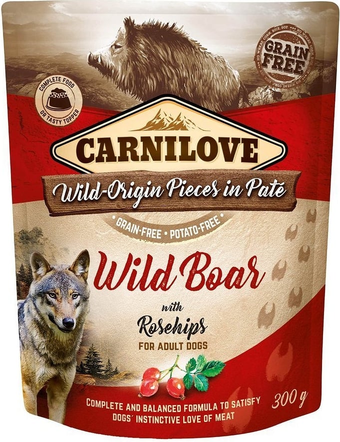 CARNILOVE Dog Paté Wild Boar with Rosehips 300g märja koeratoit Metssea roosiõitega GTIN: 8595602537709 Koertele>Koeratoit ja maiused>Koerte märgtoit | 2,59 € | Poodi | ||