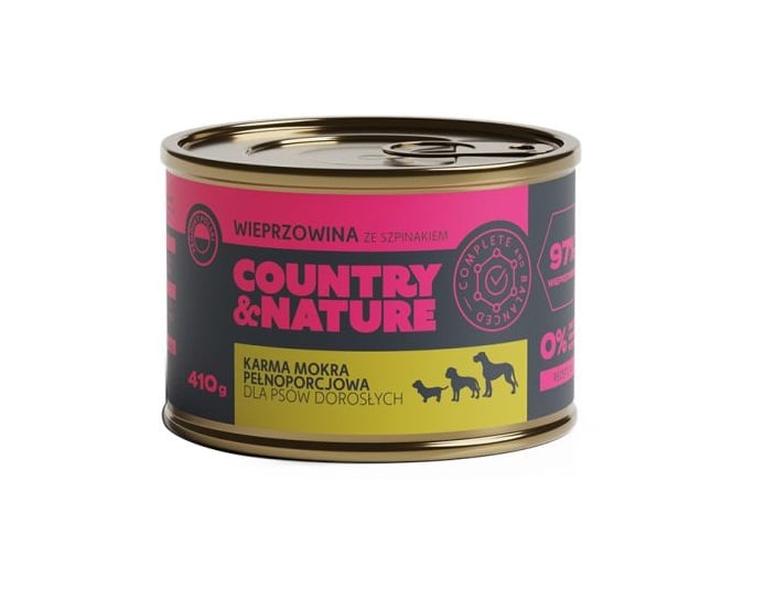 COUNTRY&NATURE teraviljavaba märgtoit sealiha spinatiga 410 g GTIN: 5904041785245 Koertele>Koeratoit ja maiused>Koerte märgtoit | 3,26 € | Poodi | ||