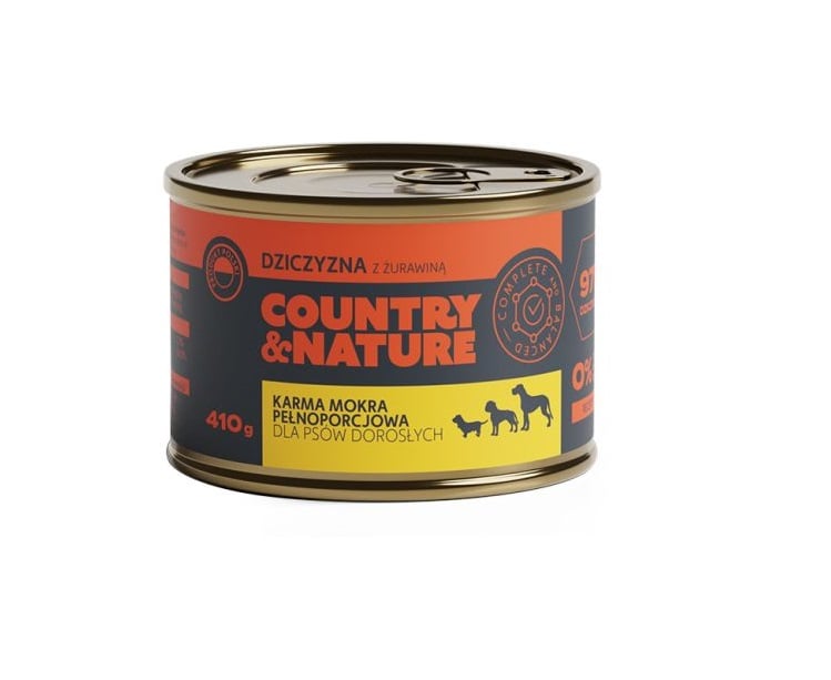 COUNTRY&NATURE Bezzbożowa mokra karma dziczyzna z żurawiną 410 g GTIN: 5904041785269 Koertele>Koeratoit ja maiused>Koerte märgtoit | 4,96 € | Poodi | ||