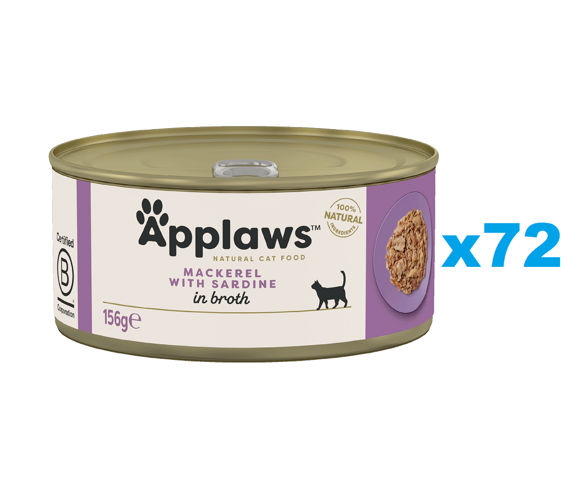 APPLAWS Cat Adult Mackerel with Sardine in Broth makrelli ja sardiini puljongis 72x156 g