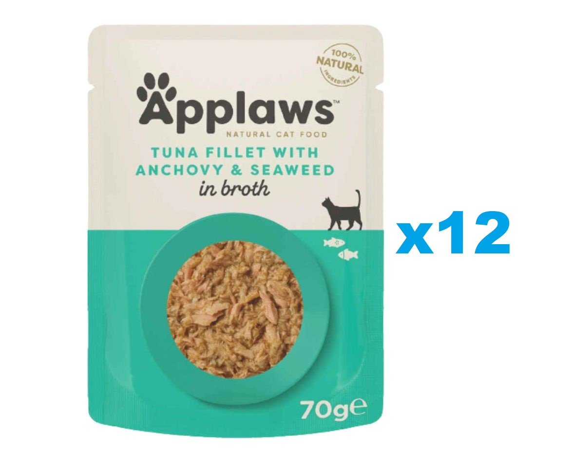 APPLAWS Cat Adult Pouch Tuna Fillet with Prawns in Broth tuunikala ja tiigerkrevetid puljongis 12x70 g