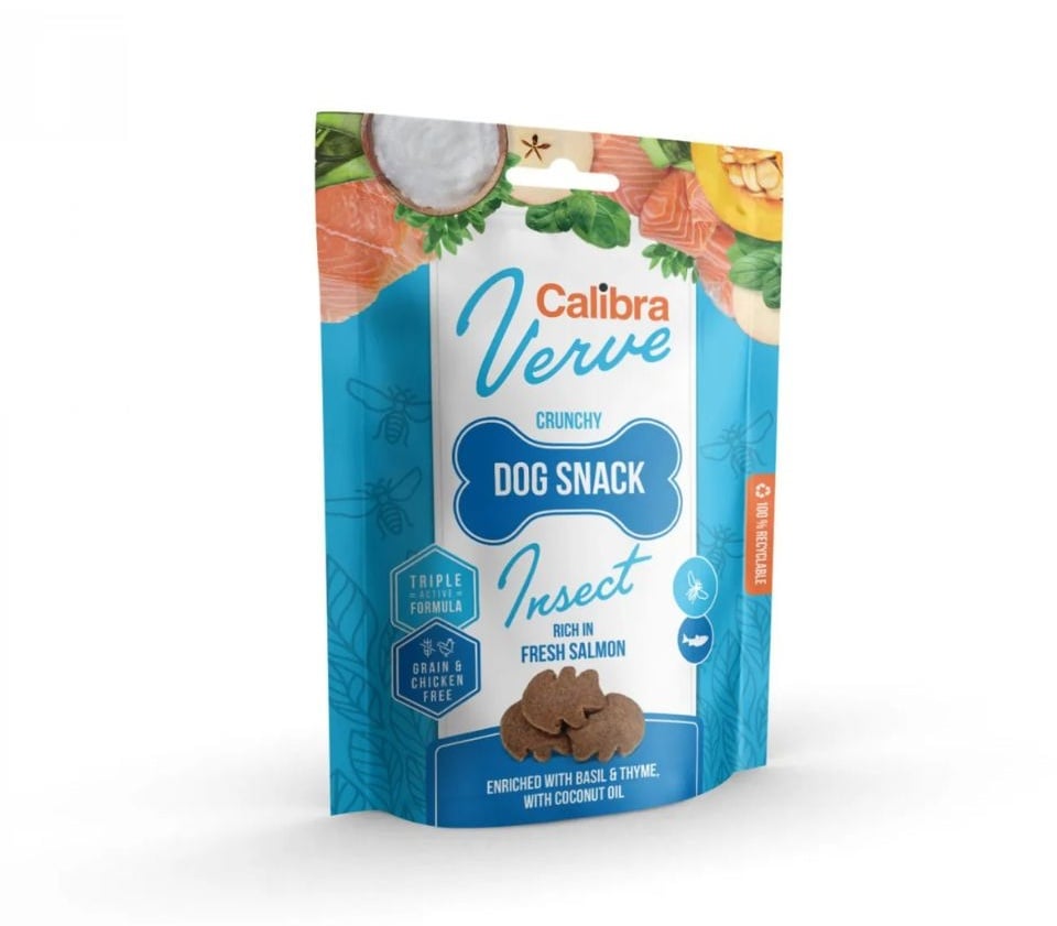 CALIBRA Dog Verve Crunchy Snack Insect&Fresh Salmon 150 g gluteenivabad maiustused putukate ja lõhega