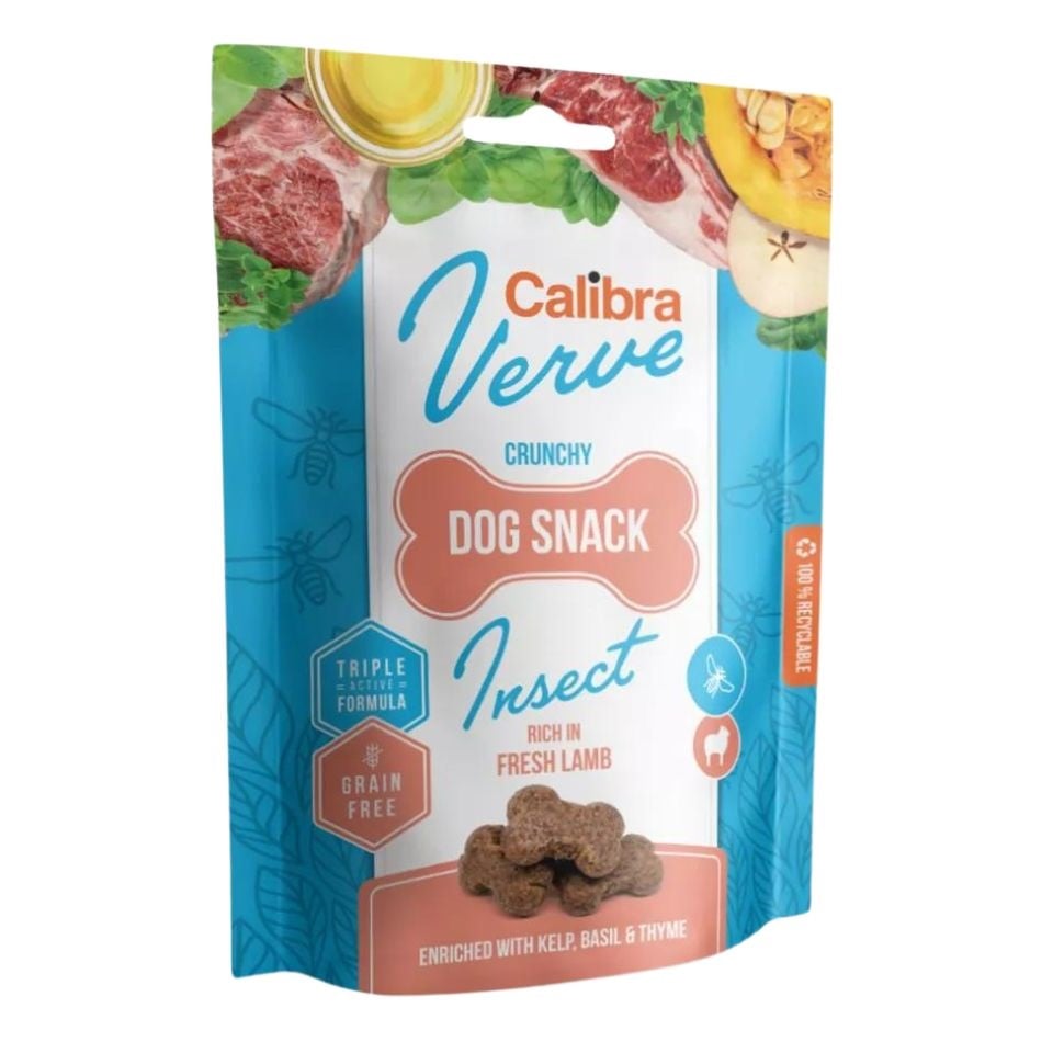 CALIBRA Dog Verve Crunchy Snack Insect&Fresh Lamb 150 g teraviljavaba maiuspala putukate ja lambalihaga