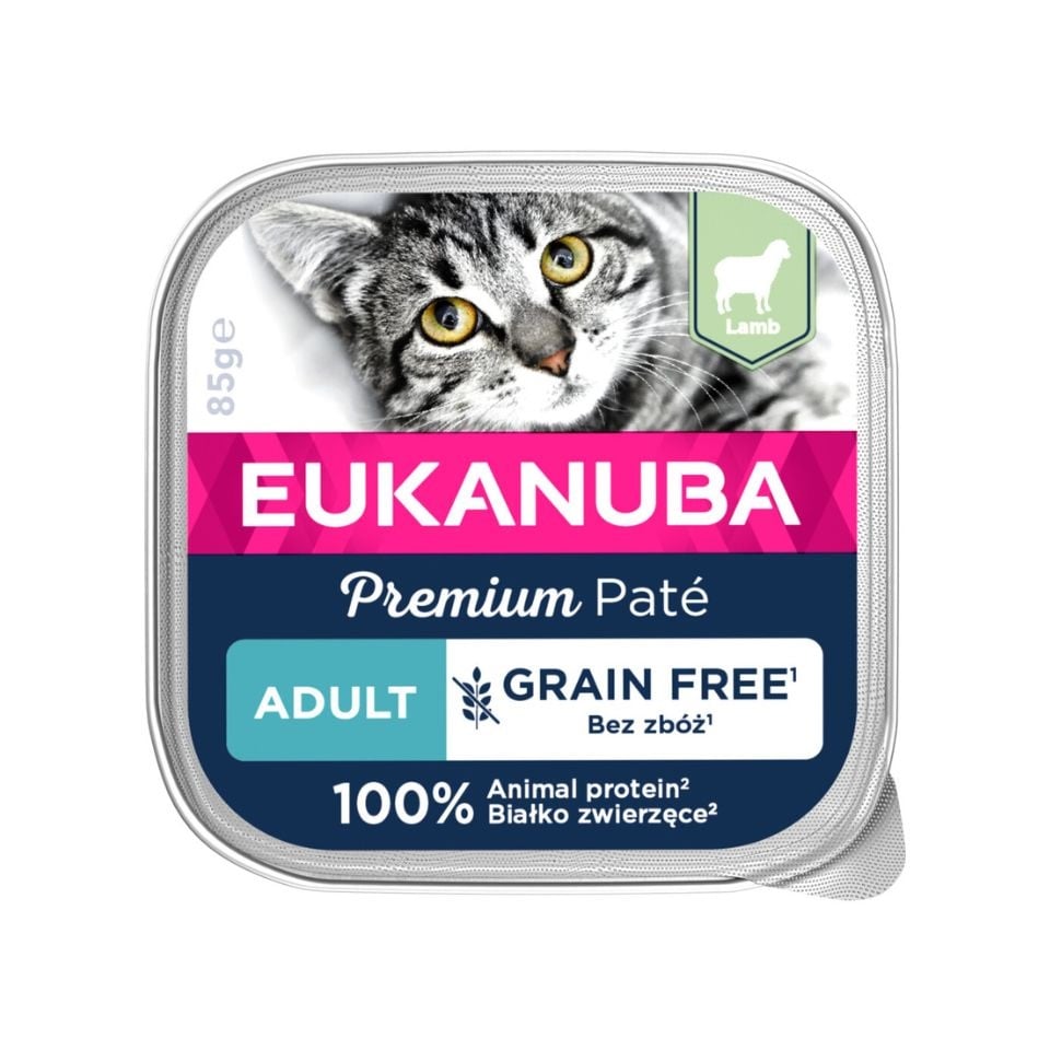 EUKANUBA teraviljavaba täiskasvanute lambapasteet 85 g GTIN: 8710255189635 Kassidele>Kassitoit ja maiused>Kasside märgtoit | 1,04 € | Poodi |