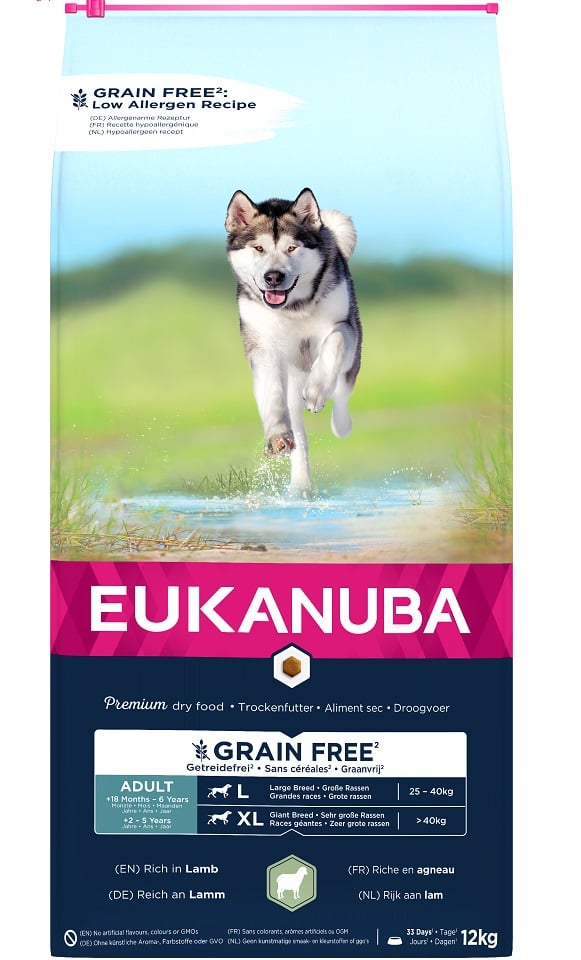 EUKANUBA Grain Free L Adult Lamb 12 kg täiskasvanud suurt tõugu koertele GTIN: 8710255190259 Koertele>Koeratoit ja maiused>Koerte kuivtoit | 57,77 € | Poodi | ||