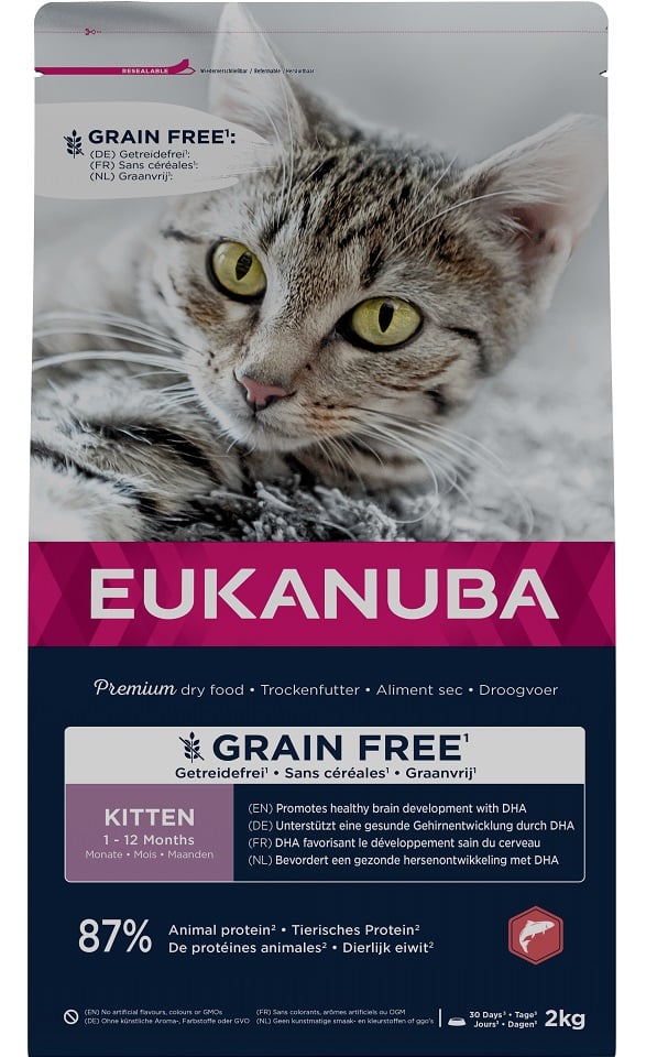 EUKANUBA Grain Free Kitten Lõhe 2 kg kasvavatele kassipoegadele GTIN: 8710255189260 Kassidele>Kassitoit ja maiused>Kasside kuivtoit | 16,22 € | Poodi | ||