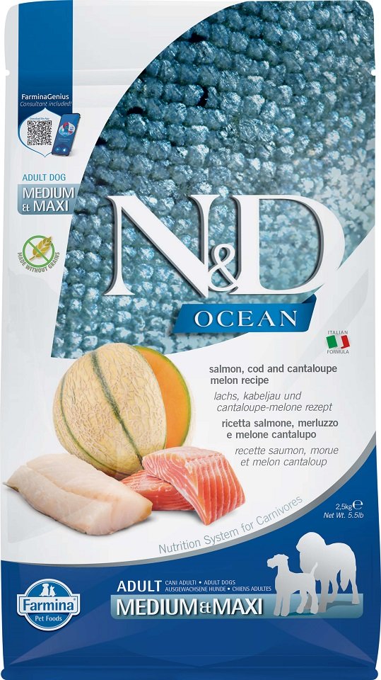 FARMINA N&D Ocean Dog Adult Mini salmon, cod & canatloupe melon 7 kg lõhe, tursk, harilik melon