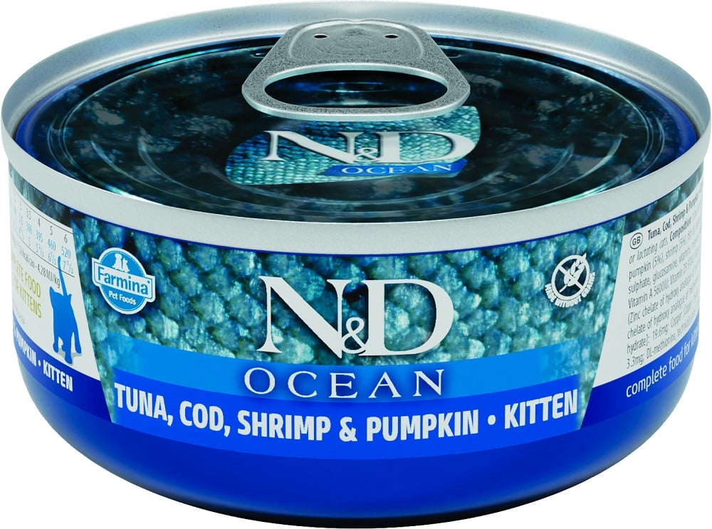 FARMINA N&D Ocean Cat Kitten Tuunikala, tursk, krevett, kõrvits 70 g