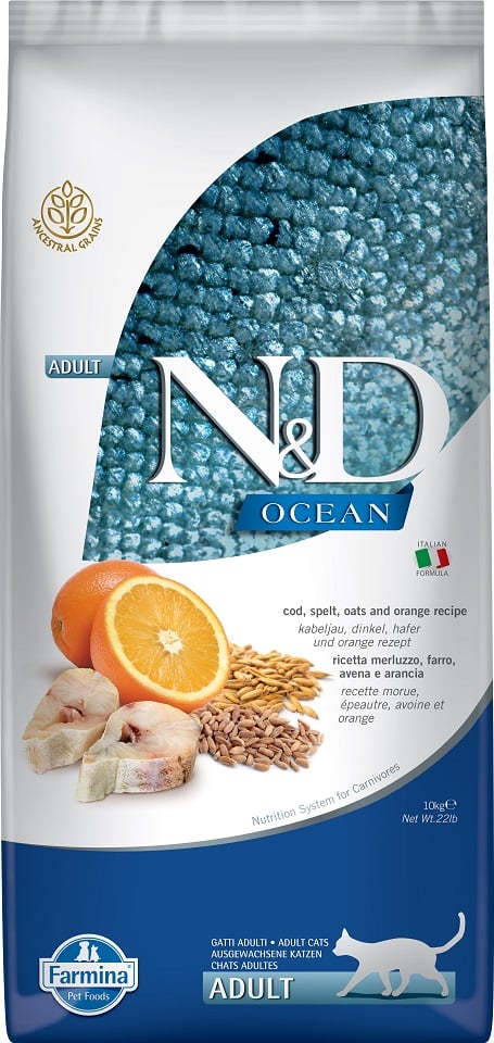 FARMINA N&D Ocean Cat Adult Cod, Spelt, Oats & Orange 10 kg