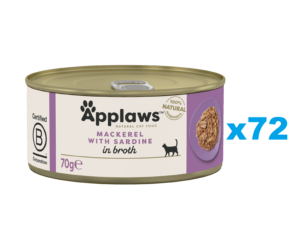 APPLAWS Kassi täiskasvanud makrell sardiiniga puljongis 72x70 g GTIN: 5060481891424 Kassidele>Kassitoit ja maiused>Kasside märgtoit | 92,16 € | Poodi | ||