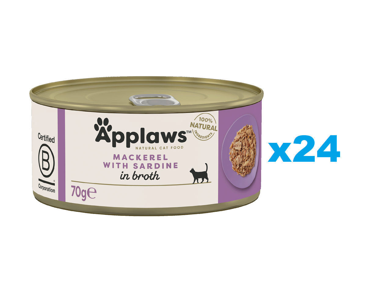 APPLAWS Kassi täiskasvanud makrell sardiiniga puljongis 6x70 g GTIN: 5060481891110 Kassidele>Kassitoit ja maiused>Kasside märgtoit | 7,98 € | Poodi | ||