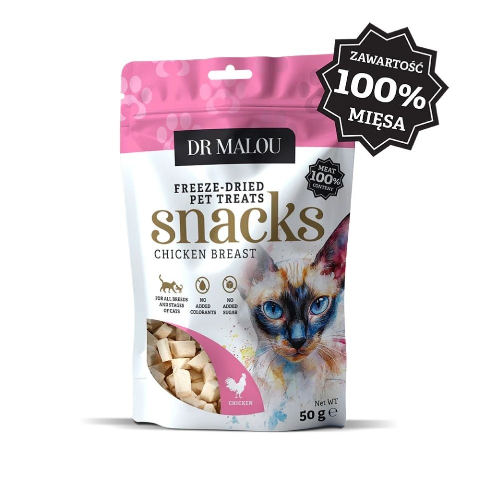 DR MALOU Lihav kuubikud 100% liofiliseeritud partide rinnast 50g maiused kassidele