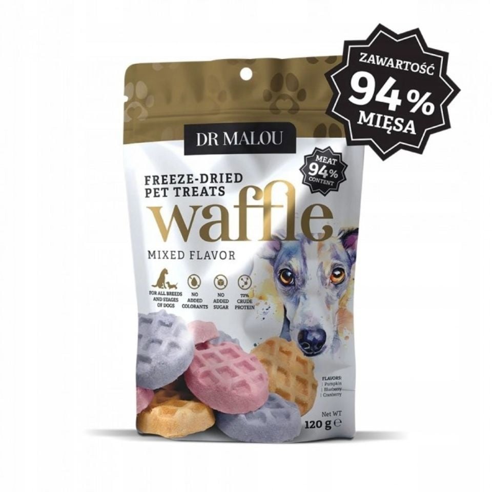 DR MALOU Waffle Mixed Flavor Külmkuivatatud kana-vaflid 120 g GTIN: 5907346090045 Koertele>Koeratoit ja maiused>Koerte maiuspalad | 12,58 € | Poodi | ||