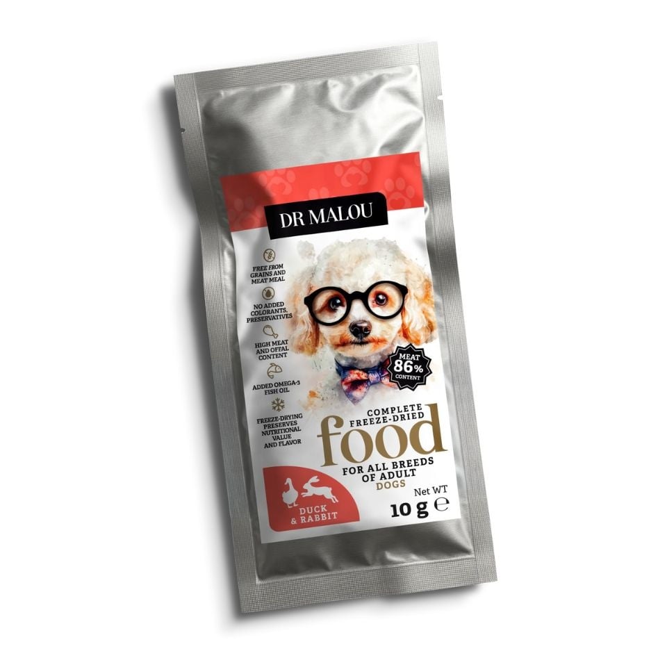 DR MALOU Liofiliseeritud toit „Pardiga ja jänesega“ 2x10 g kuivtoit koertele GTIN: 5907346090649 Koertele>Koeratoit ja maiused>Koerte kuivtoit | 2,80 € | Poodi | ||